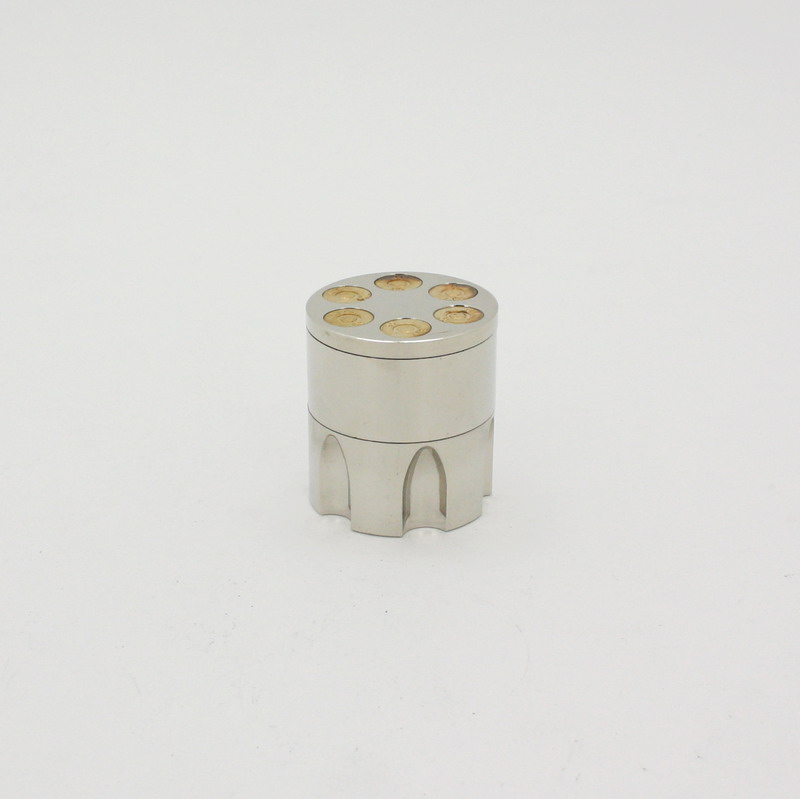 3 piece grinder that looks like a 6 shooter gun barrel. It even has a stash room!