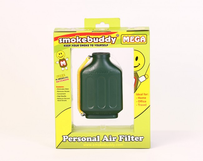 Smokebuddy MEGA is one of the newest in the Smokebuddy Collection. Designed with a filter twice as large as the Original Smokebuddy. The flat shape fits in your hand and looks great. Every Smokebuddy MEGA includes a MEGA size Mr. SmokeBuddy LED keychain that will light up when you squeeze him. Smokebuddy MEGA will last the heavy users months and possibly years. The Smokebuddy MEGA is a handy, and reliable, life saving air filter. Simply exhale your smoke through your easy-to-use Smokebuddy MEGA and odorless air comes out the other end. Smoke where you want, and when you want without anyone knowing the wiser. Keep second hand smoke away from friends, family, and neighbors with your Smokebuddy MEGA.